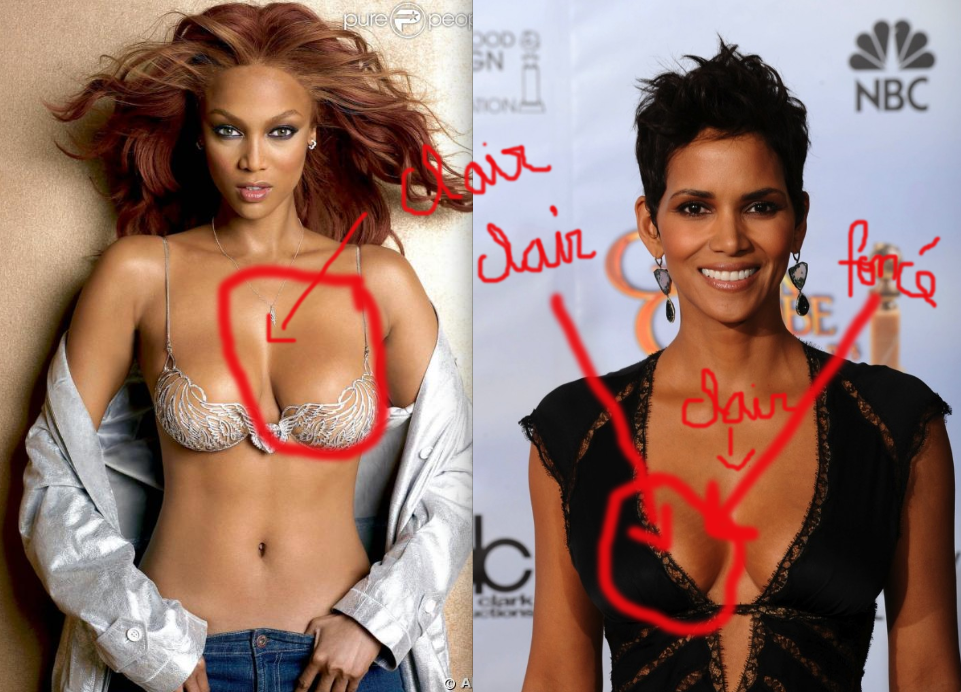 Hé oui mesdames, qui ne rêve pas d’un magnifique décolleté rebondi à la Tyra Banks? En plus du fameux soutien-gorge pigeonnant, encore une fois, le maquillage fait de la magie pour vous!