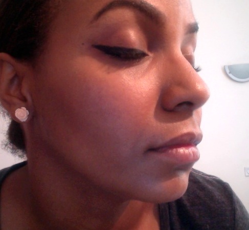 1 ) J'applique le premier trait de eye-liner en suivant le trait naturel de mon oeil ( sans le tirer vers l'exterieur de l'oeil )