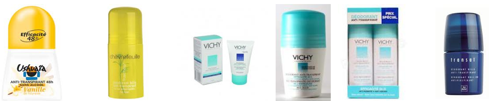 -L'antitranspirant : "Ils réduisent le volume de sueur émise, sans supprimer la totalité de la sécrétion, Ils agissent en bloquant, en bouchant le canal sudoral. Les principes actifs principaux ? Sous forme d'hydroxychlorures d'aluminium, les sels d'aluminium vont resserrer les pores de la peau et diminuer ainsi la sécrétion de transpiration jusqu'à 75 % ! Ils ont également une action antibactérienne, ils détruisent les bactéries en dégradation à la surface de la peau, responsable de l'odeur.