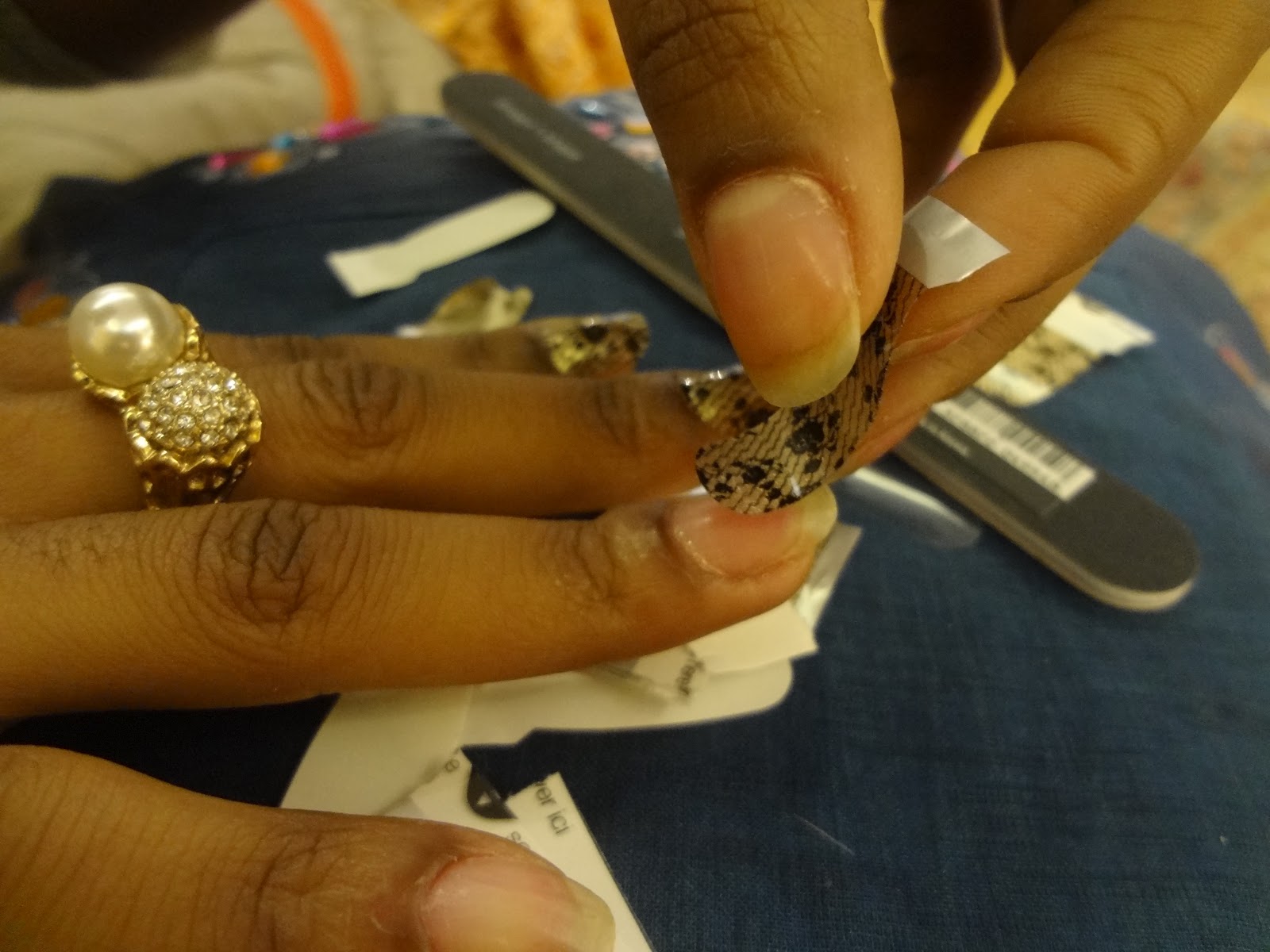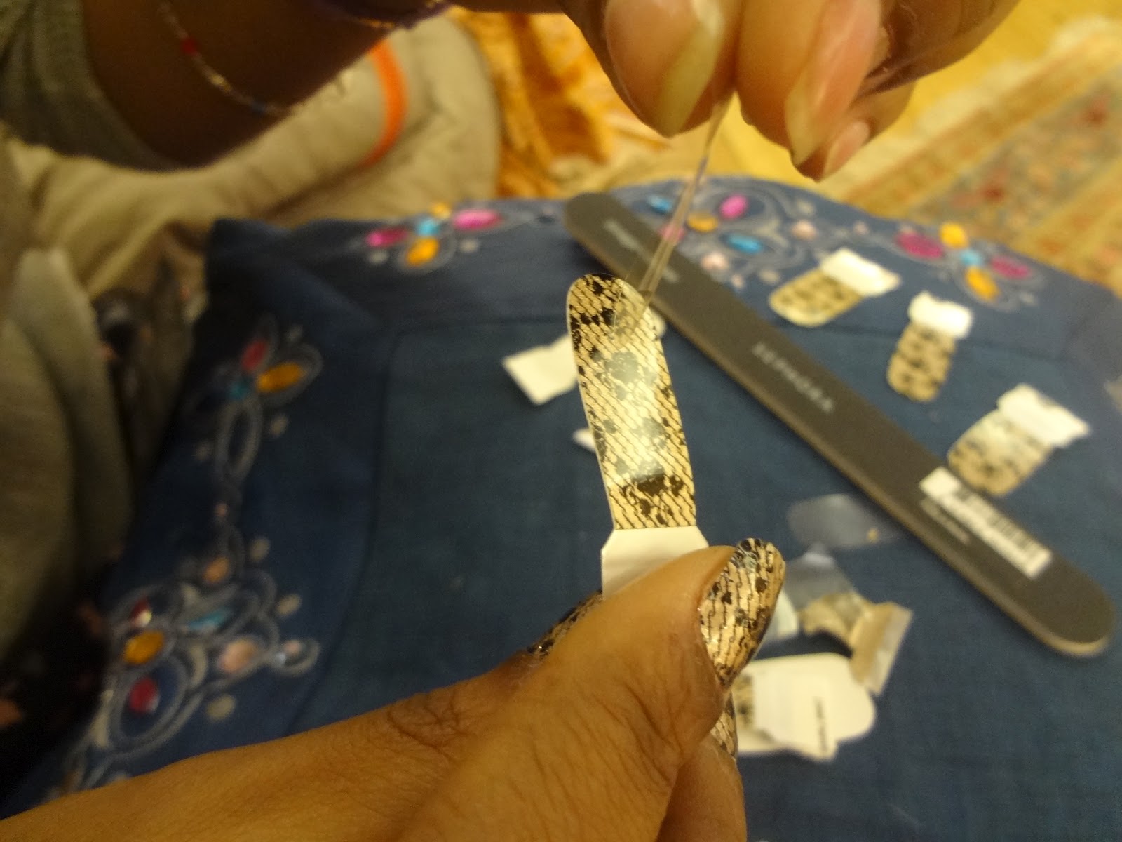 6. Enlever l'excédent en repliant le vernis adhésif sous l'ongle: il se découpe seul (disent-ils)