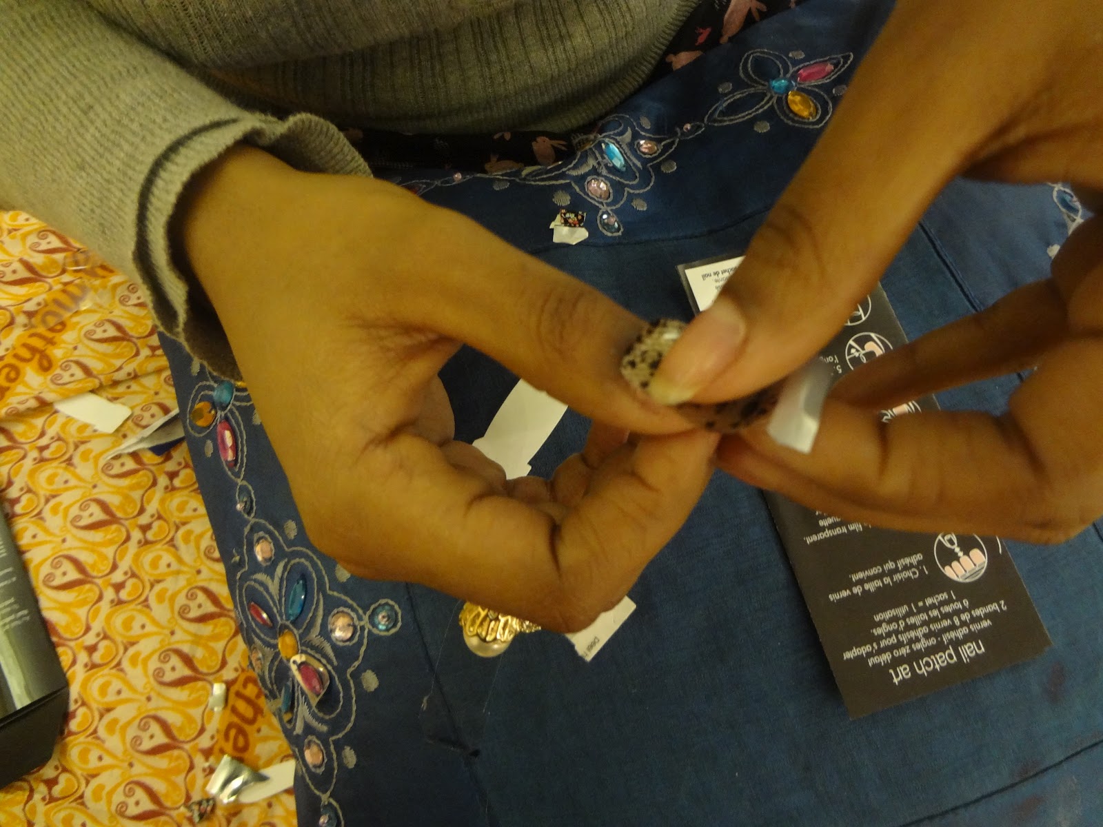 C'est dommage parceque certains motifs ne sont pas mal du tout!! mais alors là! je suis assez manuel (de manière générale) mais je n'ai pas compris pourquoi les adhésifs ne collaient pas bien sur le bout de mes ongles! résultat: 15min après les bords étaient partis!!