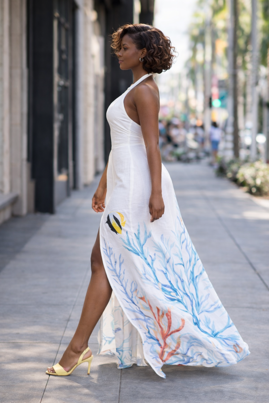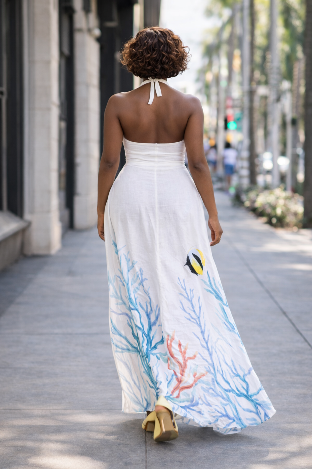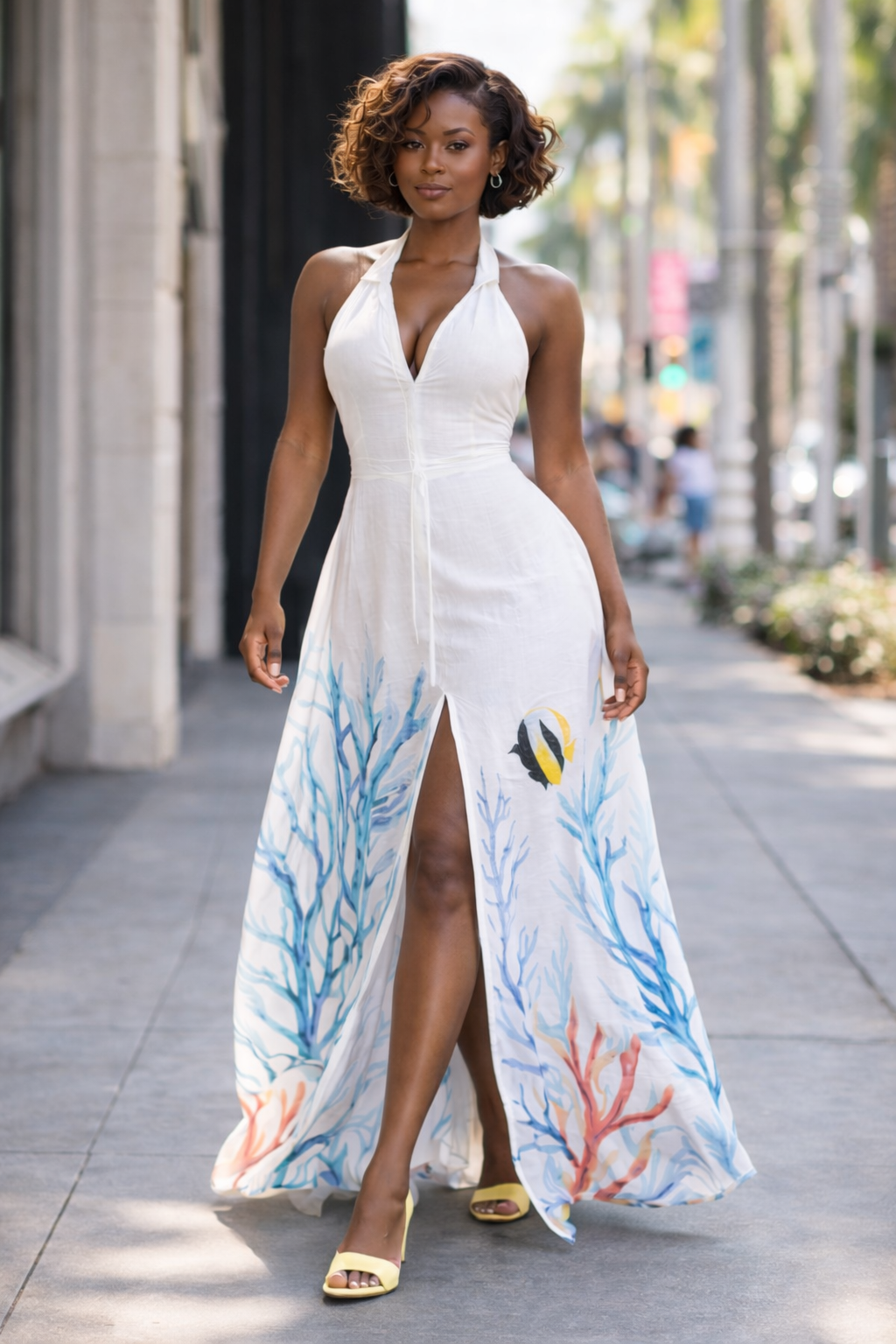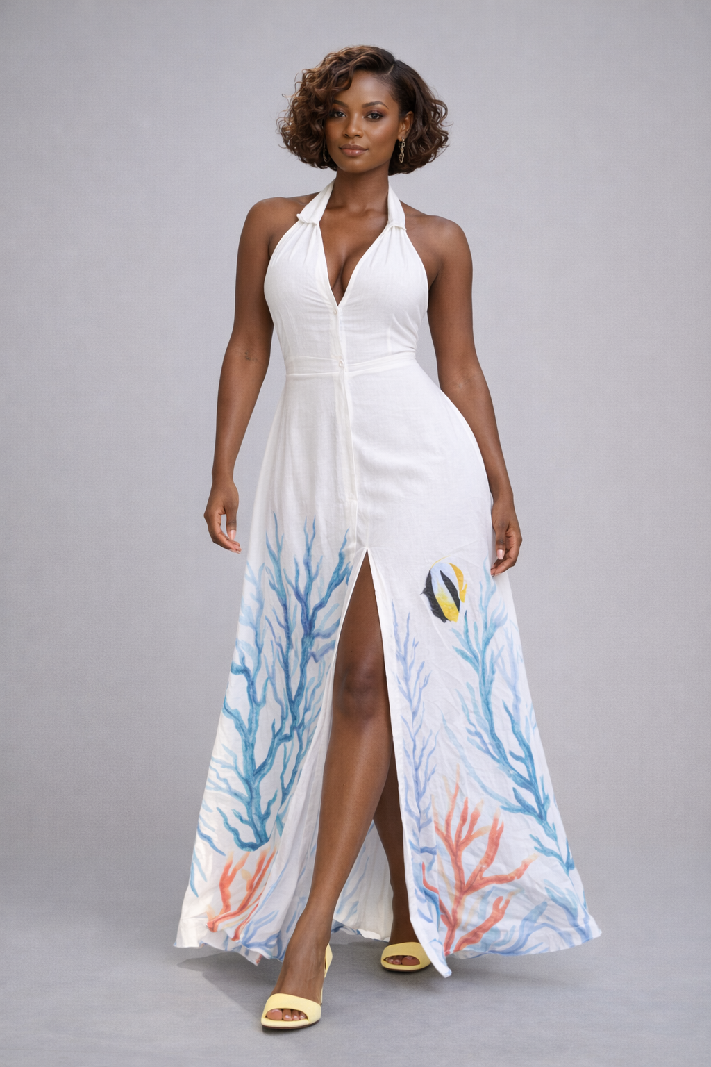 Pensée pour une femme sûre d’elle, cette robe se porte aussi bien en journée qu’en fin d’après-midi, pieds nus sur le sable ou en talons au cœur de la ville. Une pièce forte, élégante sans effort, qui attire le regard sans jamais en faire trop.